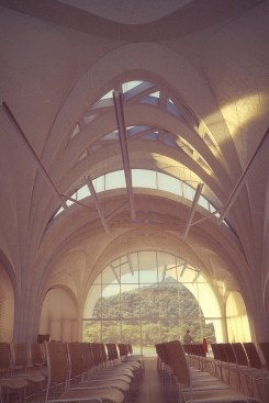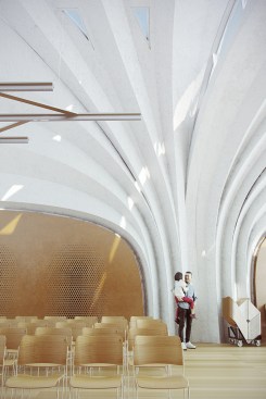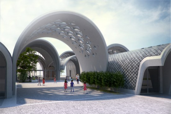 The barrel and parabolic vaults act as the school’s primary structure and enclosure, with each vault performing as an individual structural element.