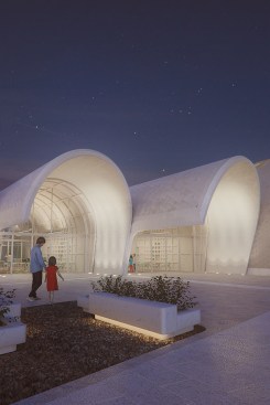 To minimise construction time and also reduce the number of separate building elements required to be transported to the school’s remote location, ZHA proposes to combine the local skills of in-situ concrete construction with new advancements in hot-wire cut foam formwork that can be prepared on site by an industrial robot to create the barrel and parabolic shaped moulds.