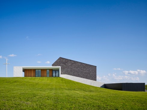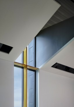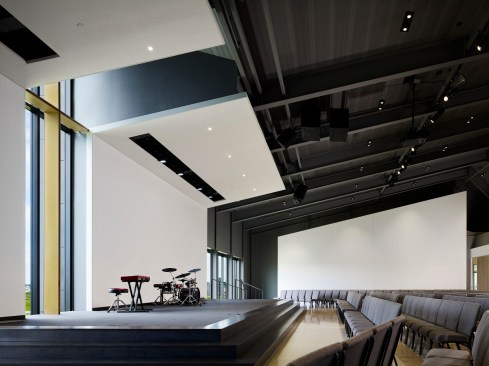 Lutheran Church of Hope – Johnston-Grimes is a satellite campus of a large, Evangelical Lutheran Church in the heart of Iowa. The 21,150 square-foot building serves as a community and worship center for a fast-growing population within a new suburban development. Gathering spaces, educational facilities, and a flexible 500-seat worship space enable residents to grow and connect within the life of the church and the surrounding community. The building is orientated towards an on-site pond that was used to maximize storm water management strategies; the orientation also connects the building to a series of exterior amenities including an outdoor plaza and worship space. This project represents phase I of development on the 15-acre site. Phase II will include a 1,500-seat worship space, and phase III will include classrooms, offices, and spaces to accommodate arts and music programming.