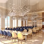 Each space has a lovely focal point that is not particularly accentuated by a single feature but is instead highlighted by a lovely mirror arrangement, artwork, or wall design that draws the eye throughout the entire room in the resort. There is a purity of symmetry in maintaining the wall designs by making maximum use of clean and straight lines, creating balance and harmony, which fosters the elegance of the overall effect in all the spaces.
