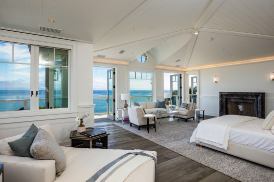 Architect Doug Burdge of Malibu-based Burdge & Associates modeled this luxury residence after homes in Cape Cod. The two-story home maximizes the plentiful ocean views with floor-to-ceiling windows, French doors and a wraparound patio. The gated residence also provides private beach access to Billionaire’s Bluff.