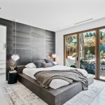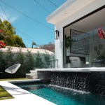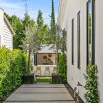 Originally built in 1924, the three bedroom, three bathroom home offers a contemporary take on exquisite California living. Courtney teamed up with designer Shanty Wijaya of Allprace Properties to manifest her creative vision for the home. Despite the home’s 1600 square foot size, Shanty created a “wow” factor in each part of the home and spared no detail. The property was completely stripped to the studs and rebuilt in 2019, and features stunning earmarks – notably the custom deluxe Italian kitchen; Vibia Algorithm architectural lighting; Miele, Gaggenau, and Thermador appliances; Ann Sacks handcrafted tile; and an expansive Jesse Italia closet in the master bedroom. The outdoor space is also drenched in luxurious touches, including a newly-built pool with a sheer descent water feature, fabulous entertaining spaces, and impeccable designer landscaping. A 50-year-old olive tree, which was hand-picked by the Seller and brought in from an orchard in Northern California, offers shade and privacy. The main house is adorned with opulent solid oak wood doors, imported limestone floors, and an impressive designer concrete wall. An alluring floating limestone fireplace is the highlight of this high-end living room.