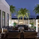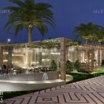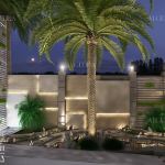 Unique boundary wall design with conceptual lighting surrounding territory creates a special atmosphere in the evenings highlighting the stylish design.