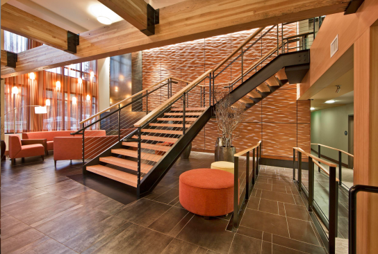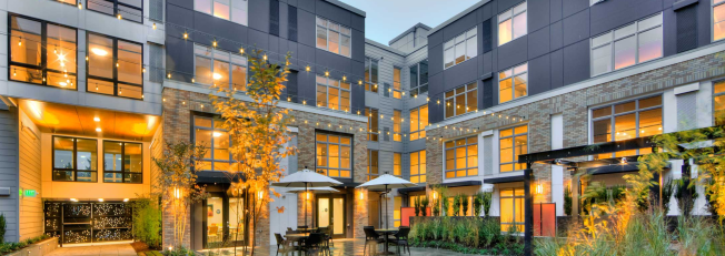 Lyric Apartments is located in Seattle’s Capitol Hill neighborhood, a densely populated urban area where traditional brick apartment houses are being joined by contemporary buildings after a recent change in zoning. The building is located a block away from the new light rail station and fronts along Broadway Avenue. The site is also divided between two zones, providing the opportunity for ground-related housing on the less public side. The building will also feature first-class amenities like the fitness center and yoga room, as well as a generous courtyard at ground level. Rich, traditional materials combine with a contemporary design vocabulary to fit the building to its context.
