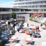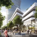 The first and most visible phase of the project will be a 56-storey tower, on top of an extended 5-storey horizontal base or “podium” of public facilities and retail and recreational uses. The tower has a special geometry that not only provides for excellent residential units but also contributes to the iconic role of this building on the urban skyline. The podium has a prismatic shape by virtue of its faceted glass walls, as well as a large rooftop amenity and green roof.