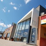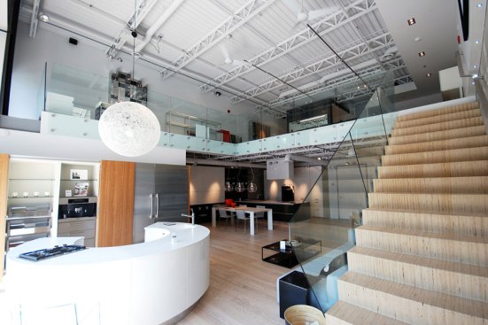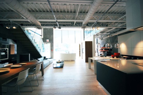 Breaking away from the street scape this structure creates inquiry and brings depth to the long stretch of commercial spaces nearby. With a large glazed area the store opens up to the public allowing them to view inside and around the store twenty-four-seven, bringing new meaning to the phrase window shopping. www.h5architecture.ca