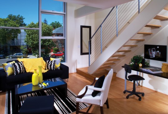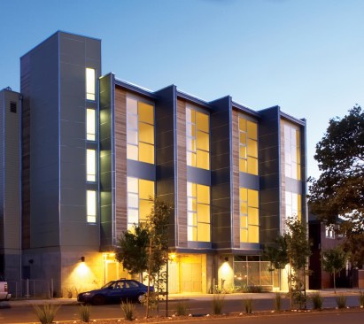 Designed as transit-oriented, affordable, first time home-buyer lofts, these 16 units are walking distance to the MacArthur BART station in Oakland. Above the podium, lofts are arranged around a central private courtyard. The living areas have floor-to-ceiling windows with open, informal spaces creating a generous feeling of light and air. The exterior design accentuates the individual units creating a row house building rhythm with a contemporary architectural expression.