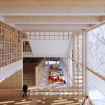 Within the library, a soaring atrium opens to the uppermost levels of the building, allowing visitors to orient themselves immediately to the activities within and inspiring them to move upwards through the library. As visitors move upwards via the spacious tribunes, the building offers unique views out to the mountain and the Tap Seac Square.