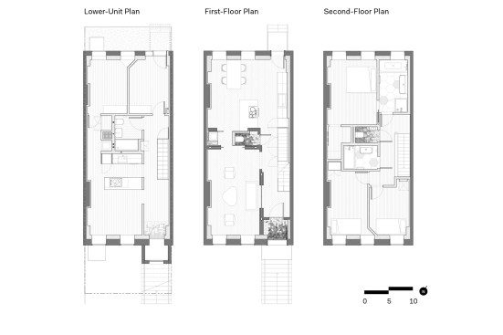 Mandl and Johnston’s first step was to divide the property into two units (a ground-floor apartment and a two-story unit above, where they would live). Then, they focused on the most involved aspect of the renovation: creating an airtight envelope.