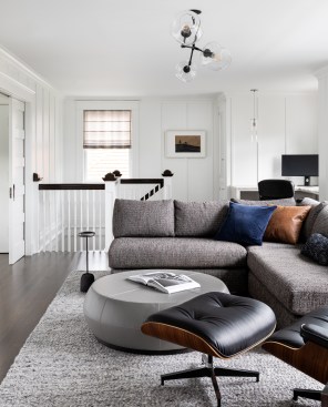 An extensive interior remodel of a 1904, 2 story Federal style residence included attic and basement level improvements, a new kitchen, powder room, and bathrooms. One of the owners is originally from the East Coast and missed the feel of those residential buildings. Exterior shell work included Weathered shingles to recreate the style of the East Coast. New decorative light fixtures and custom furnishings throughout complete this home.