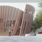 An additional garden component of the design has been elevated to the roof level to create a serene enclosure for visitors, a peaceful outdoor retreat that aligns with the canopies of the surrounding foliage. Timber has been chosen as a renewable material to emphasize the building’s human character, and to further differentiate it from its surroundings.