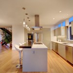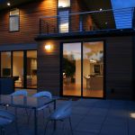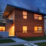 This project relies on a number of green design features (southern exposure glazing, oriented overhangs, bioretention cells, choice of materials) to minimize life-cycle costs as well as reducing its construction impact. The lot slope has been integrated in the design (the garage roof doubles as deck at the main level) to maximize indoors-outdoors interaction. The main bulk of the house shys away from the south edge to make room for the upper deck (with view of the Sound).