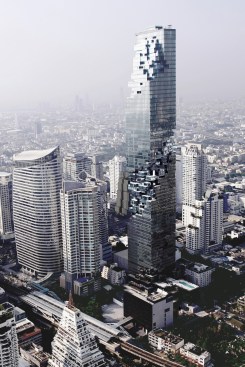 “The idea behind MahaNakhon was to take the life of the city and bring it up the tower in a dramatic, spiraling movement,” says Ole Scheeren, Principal of Büro Ole Scheeren. “Even the very top of the tower is surrendered to the public, so there is not only a public square at the ground, but human activity rises along the pixelated shaft to the top floors of the building which are given back to the public domain. It is a project that is strongly embedded in the city and the public realm, and expressively proclaims itself as an active part of it.”
