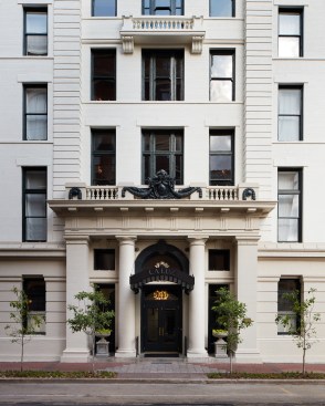 Maison de la Luz from Atelier Ace is a new luxury guesthouse designed in collaboration by EskewDumezRipple and interior design firm Studio Shamshiri. The design team worked in tandem to transform the legacy six-story, 55,464-square-foot former City Hall annex into a sophisticated destination. Located in the warehouse district near Lafayette Square, the 1906 building was originally designed by Allison Owen of Diboll and Owen Architects in the Italianate style, typical of turn-of-the-century buildings in New Orleans. The hotel offers 67 guest rooms, a private guest lounge and dining room, plus support spaces. Each guest room is set back from the shared hallway by an interior vestibule.