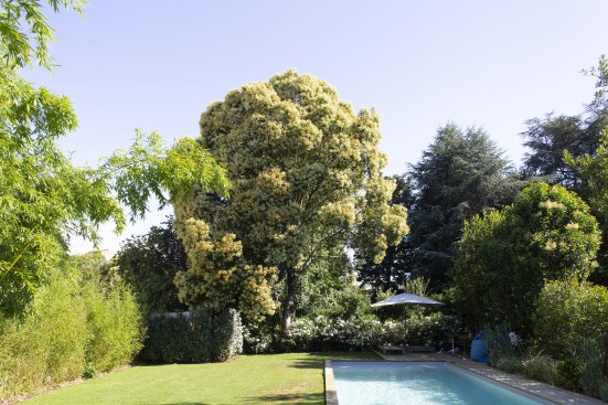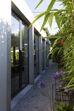 Ma limite visuelle, incarnée par la clôture actuelle, est une tapisserie d’essences végétales douces et colorées pour brouiller les intervalles dedans-dehors et dessiner une toile de fond, un paysage intérieur.