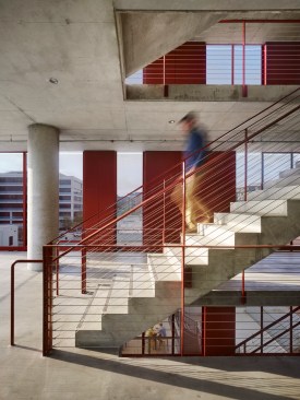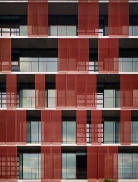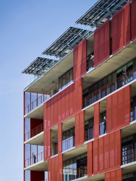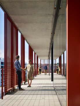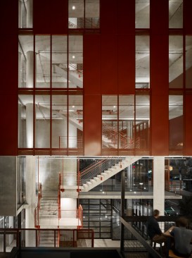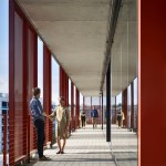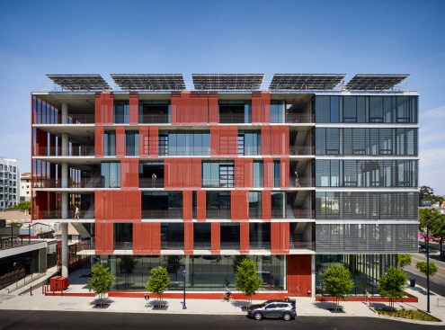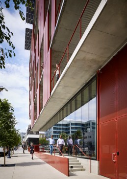 Makers Quarter Block D is a 6-story collaborative office hub in the heart of the development. With retail and restaurant suites on the ground floor, the building has been designed for street level activation and to encourage interaction from the surrounding community. Targeting LEED Platinum + Net Zero, highly flexible office suites utilize natural ventilation through the use of motorized windows and garage doors on each level. An exposed concrete frame integrates with the natural ventilation systems to utilize a night purge of thermal mass for passive cooling during the day. A high performance facade utilizes two active shading systems that enhance daylighting and provide flexibility to operate preferences within individual tenant spaces.