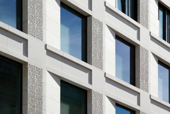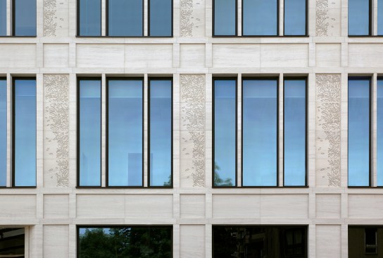 In terms of urban planning and commerce, the shopping centre creates the necessary structural connection between the shopping and entertainment quarter west of Potsdamer Platz and the high-end boutiques along Friedrichstraße. The use of the piazza’s western gatehouse as a hotel and a proportional increase in living quarters are stand-out features of the building complex, which brings both a vibrant atmosphere and a mutual enrichment of functions. The facades on Leipziger Straße, Wilhelmstraße and Voßstraße, as well as the piazza, borrow elements from the original Wertheim building and reinterpret them in a contemporary manner.