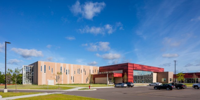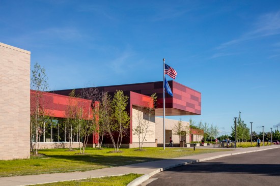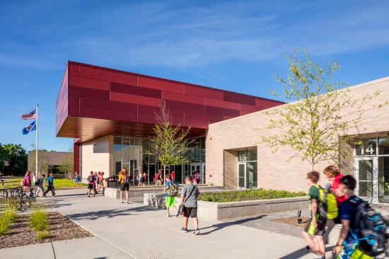 This project includes renovating a 108,670 SF facility built in 1965, adding a 12,200 SF pod with a variety of flexible learning spaces, and creating a 60,145 SF Community Center addition. The Community Education and Recreation Center (CERC), with its own entry, includes three gym stations with an elevated track, fitness center and community meeting spaces. Large glass windows will bring natural light deep into the facility, lighting all recreation and meeting areas. The classroom addition accommodates the district’s movement toward a STEAM program and provides two academic clusters each with ten classrooms and three Einstein labs (multipurpose labs that can be used for science and other subjects. The commons area, the building’s heart, seats up to 400 students and focuses on a raised stage area with acoustical ceiling. DLR Group provided architectural, mechanical, electrical, plumbing, structural engineering and interior design services.