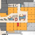 “We made a conscious break from the traditional double‐loaded corridor of most malls to create a new more intimate shopping destination that connects the shopper both visually and physically to every store.” said Donna Childs, principal at tvsdesign.