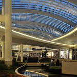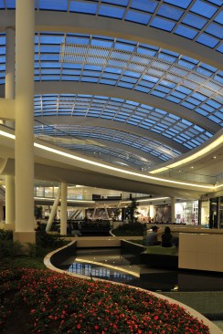 Mall Plaza Vespucio Aires represents a major expansion and facelift to this Santiago shopping mall. As the focal point of the interior, tvsdesign has created a lush garden court capped by a bold glass roof structure. The project vision is to attract a new upscale tenant and clientele mix by the creation of a large daylit winter garden designed to provide customers a relaxing, spa-like shopping environment. Floating cafe living rooms and specialty retail are woven together with sculptural landscape including a cascading stream. Sweeping roof lines and curvilinear forms bring a new modern image to the mall’s exterior. This, along with the addition of a new covered walkway, help to unify the building and offers an enhanced pedestrian experience.
