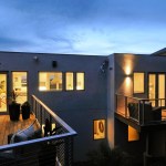 The project faced several design challenges. First, it needed to capitalize on the sweeping views of the San Francisco Bay while maintaining privacy. This was done by opening up public space more as they rose, with the uppermost spaces being the most open, and by connecting large open interiors to outdoor spaces that were hidden from the street. Private spaces were then separated through recesses and screen walls. Second, the project had to integrate into the neighborhood without copying the adjacent traditional styles. This was accomplished by echoing form and proportion, but omitting details such as trim and window style.