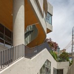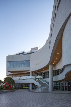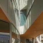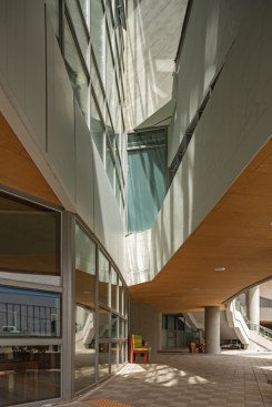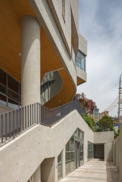 Thanks to the height variation of the surrounding site, this building can be accessed from several different levels of the street. The space of the different levels appeared both inside and outside in the grand lobby space.