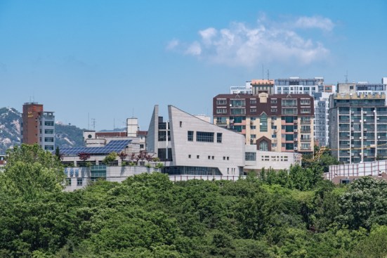In the ancient times, the castle wall of the Seoul which demarcate the boundary of the city usually existed at the ridge of the hill. Like those old castle wall, the church is located at the border line of the two districts. Longitudinal and curvaceous wall façade not only demarcate the inside and outside of the building but also recalls the memory of the existing site.