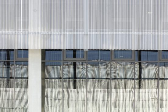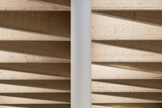 Des espaces de convivialité et des espaces verts contribuent ainsi à faire du MIN un véritable lieu de vie. La structure bois de la couverture de la halle apporte une ambiance chaleureuse et exprime par sa géométrie régulière le concept de flexibilité et d’évolutivité que nous proposons pour l’ensemble du MIN. Cette grande toiture forme un large auvent qui accueille visiteurs et personnels.