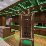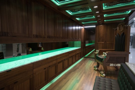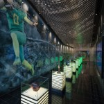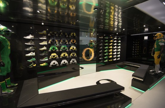 The Equipment Facility is a state-of-the-art space that houses equipment for UO football and other sports programs. Ultra-high-density custom storage comfortably packs 2.5 miles of shelving into this compact space. The space doubles as a recruitment facility. Potential athletes visualize themselves as Ducks in a mirror that displays a variety of Oregon uniforms.