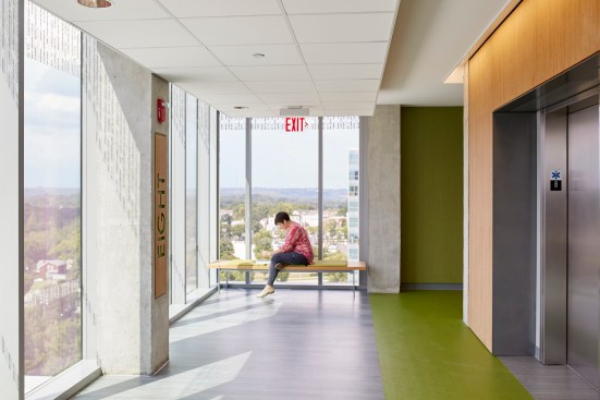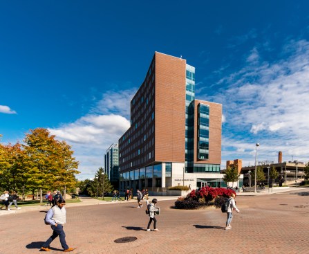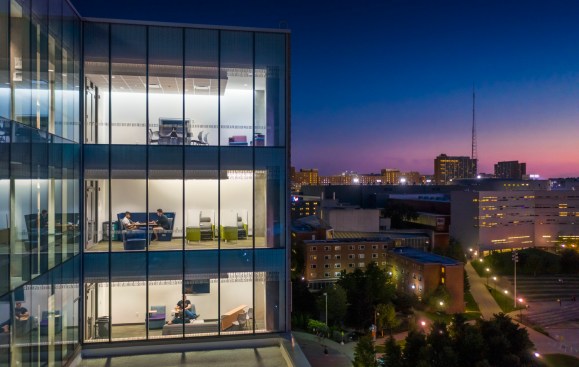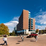 If engaging with peers sets students up for success, then residence life is where lifelong memories and friends are made. Marian Spencer Hall capitalizes on the University of Cincinnati’s unique setting and connects its resident community to the energy and joy of city living. By activating pedestrian pathways outside and one-of-a-kind views from within, Spencer Hall celebrates urban campus living. Also home to student life services, the building acts as a hub for the residential section of campus by keeping students immersed in programming outside of the classroom.