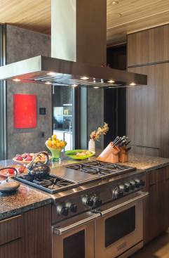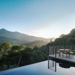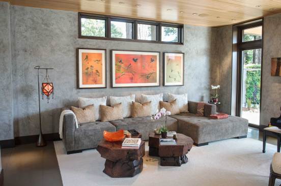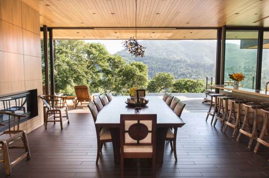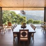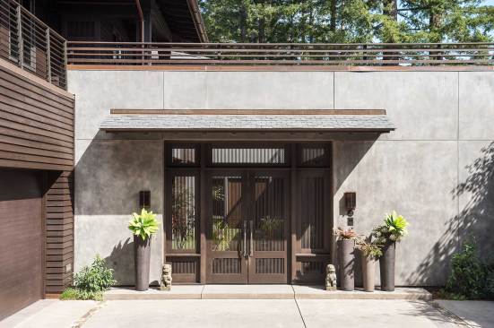 Zumaooh began by distilling the owner’s rich trove of Asian visual references into a cogent approach for the design. Based on classical Chinese architecture, the house is strongly horizontal, centered around a leafy courtyard, with spaces that flow easily one to another. Monumental sliding glass doors open the main floor onto both the pool and the grandeur of the mountain beyond. The furnishings, sourced for sustainability, subtly evoke the Far East.