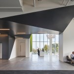 Creating a people-centered experience that improves efficiencies and visual connections between interior spaces was paramount to the design. Similar exterior color palettes, textured materials, and metal panel systems on main entry canopies are used in alternating and opposing schemes on both buildings to create a sense of connection between the structures while preserving each building’s distinct identity. Shared campus amenities, such as bay-view walking trails, outdoor seating, and native landscaping, provide a connection and a clear path of travel between the two buildings.