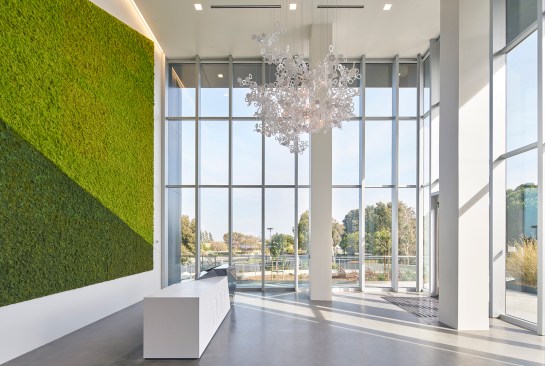 Blitz’s project includes the complete renovation of two office buildings on the 150,000-square-foot Marina Landing campus in Brisbane, CA, located just seven miles south of San Francisco. The goal of the building repositioning was to transform the location into a sought-after creative office campus. Both buildings, which had remained vacant for more than four years prior to the renovation, underwent complete exterior and interior repositioning. Blitz created a cohesive campus design that visually unifies the two buildings and fosters an instantly recognizable identity. The design embraces the surrounding mountains and marina.