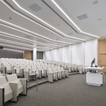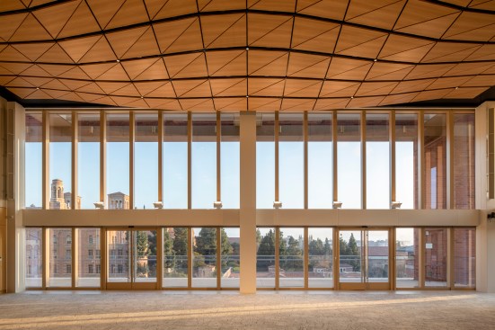 High-performance low-E glazing, operable windows in private offices, and green roofs that mediate between the new and existing structures are just a few of the building’s many sustainable features. An array of shading devices animate the glazed facade, both veiling and framing the generous terrace and event space within while emphasizing the building’s civic presence and welcoming demeanor.