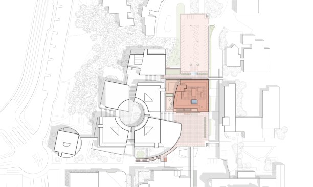 Brick and buff masonry combine with painted aluminum and glass in a lively composition that connects fluidly with the existing Anderson School complex.