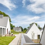 The inward orientation of the steeply pitched buildings on site creates an intimate community feel while also mitigating the drastic grade change and allowing mountain views. Stewarding the land was an important piece of the project and HGA installed geothermal heating and cooling systems to reduce energy use. The team also incorporated native plants to create bioswales and a bioretention basin in the landscape to capture and treat stormwater runoff.