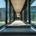 The house has a strong interior to exterior connection with panoramic views to the east across the ravine and a direct connection to an outdoor room on the southwest. The outdoor room nestles into the ground, bounded by architectural site walls to the south and west, and is embraced by the house on the north and east. The outdoor room takes advantage of solar access and uses the mass of the pods to deflect noise from a nearby highway. Native vegetation extends to the edge of the site walls creating a Zen like oasis in the landscape.