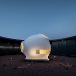 It’s impossible to design a space-ready dwelling with just a few months lead time and an exhibition budget, so some of the design concepts remain just that. While the team had tested PVDF membrane for the inflatable living quarters (the same material used for inflatable bounce houses) and researched other higher-tech materials, the prototype installed in Beijing this fall featured a rigid resin skin that mimicked the translucency of the membrane. And while the design calls for a phase-changing rigid floor in that module that would become a soft sleeping surface at night, such surfaces are still the subject of materials research.