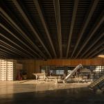 The functional areas of Martin’s Lane step down the hillside, from the grape-receiving area at the top, through fermentation and the settling room, down to the bottling room on the above ground level, and finally the below-ground barrel storage area. Throughout its 34,800 square feet, the winery’s office, wine lab and visitor spaces are woven into the manufacturing areas, including a tasting room, dining room, and visitor walkways that offer intimate glimpses of the production process. The design’s central “fracture” allows for an expansive line of clerestory windows, increasing natural daylight intake into the production areas, as well as opening impressive views of the surrounding vineyards and natural landscape. The building’s exterior is cladded with obsidian-painted structural steel, while weathered corrugated steel is used for siding and roof overhangs.