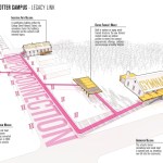 The multi-level Industrial Arts building, now on the North Carolina Historic Registry as a contributing building within a historic district, becomes a conference center with spaces for smaller meetings and offices for start-ups. A new stair unites the building’s previously disconnected floors while allowing daylight from above to penetrate the partially submerged lower level. The former Gym transforms into the Mary E. Shaw Cultural Center, capable of hosting large events. An entry vestibule at the Gym building provides an accessible entry while acting as a vitrine to showcase the Academy’s history. Finally, the farmers’ market serves as the new campus’ hub, helping connect the separated buildings.an accessible entry while acting as a vitrine to showcase the Academy’s history. Finally, the farmers’ market serves as the new campus’ hub, helping connect the separated buildings.