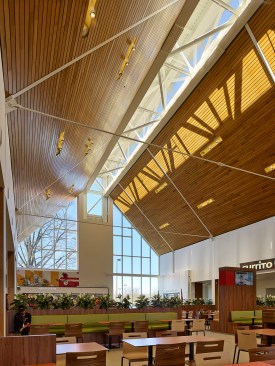 The Maryland House and Chesapeake House travel plazas serve more than 5 million visitors per year on Interstate 95, the most heavily traveled highway on the East Coast. Deterioration of the original buildings from constant use led the Maryland Transportation Authority to seek replacement designs. The design team saw the project as an opportunity to reintroduce the travel plazas in a sustainable way, transforming the concept of the isolated and prototyped node along a state highway from a “drive-in, drive-out” user mentality into an opportunity for millions of visitors to engage with high performance buildings that are intimately tied to Maryland culture and ecology. Sited within the existing buildings’ footprints to preserve trees and green space, the architects looked to regional architectural forms and the Chesapeake Bay, the largest estuary in the United States, as a source of inspiration. The bold designs respond to the scale and speed of the highway, yet provide a memorable sense of pause. The facilities are restful, convenient, and fresh and take every effort to preserve and enhance the existing natural features of the sites.