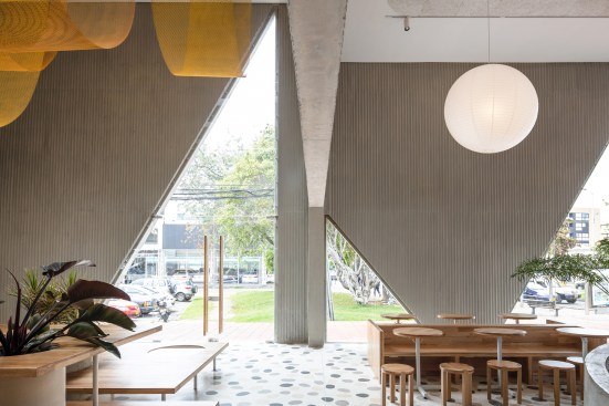 These elements are born of an interest in updating techniques commonly used in Bogotá (such as terrazzo) as well as introducing new ones that are unique to the area all part of a loose, cross-referential design context, and a restaurant that requires minimal branding. “The strategy from a design standpoint was that the building does the work”, says Cadena.