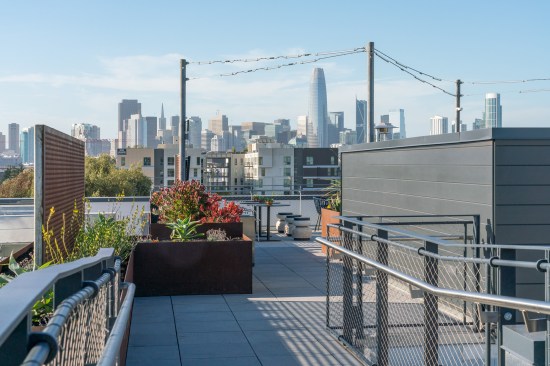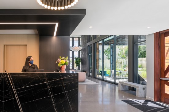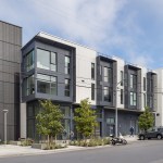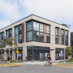 Mason on Mariposa comprises three separate buildings, each framing the project’s greenway. A mixed-use building, designed by the local firm BAR Architects, sits on the site’s northwest corner and contains a leasing office and 5,500 square feet of retail space. It serves as an entry point for Mason West and Mason East, the project’s two residential structures. Between them, the three buildings contain 299 units, from studios to three-bedroom apartments, 62 of which are designated as affordable housing.