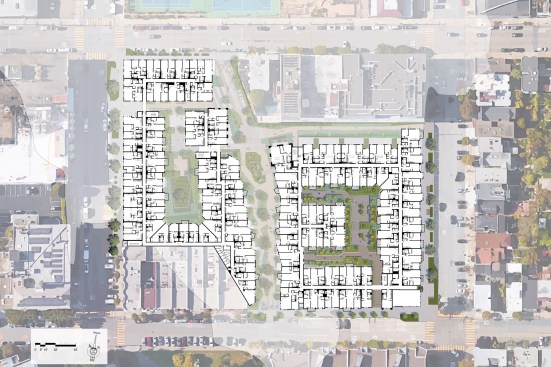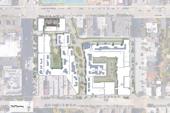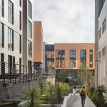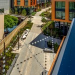 Now DBA was tasked with designing a new development along that same rail line. Spanning a city block between 18th Street and Mariposa Street, the resulting three-building, 413,150-square-foot project, completed last June, turned a 3.4-acre parking lot into a residential hub that aspires to make connections with the surrounding community. Instead of building atop the creek, the architects extended an existing easement along its path, creating a greenway connected to a “fine-grained network” of public mews. “By defining those mews, they more or less instantly became a part of a network of neighborhood streets and passageways,” Baker says.