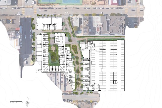 A few years ago, when David Baker Architects began work on Mason on Mariposa, a mixed-use project in the Potrero Hill neighborhood of San Francisco, it marked a return to the firm’s past. Directly across the street from the new site, in the 1990s, the San Francisco–based firm had completed its g2 Lofts, transforming an abandoned railroad tunnel into a sloped collection of lofts and apartments. That project began with an unexpected discovery: an underground creek hidden below the rail line. “We dug a hole and there was this giant pipe, which was not on any of the maps because they put it down in the 19th century,” says DBA founding principal David Baker, FAIA.