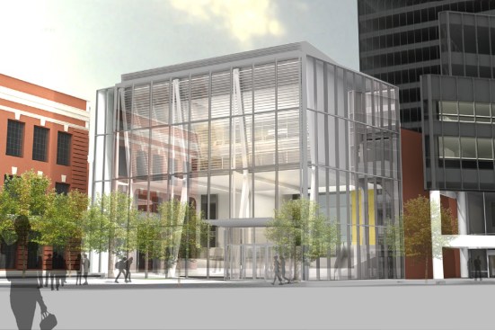 Marking the entry to the building, a double-height lobby creates a memorable focal point upon entering the building. A choreographed sequence of stairs and accessible ramps serves to orient visitors to major public spaces, as well as improve internal circulation and accessibility between buildings for the entire campus. A new studio volume directly above the lobby is clad in a diaphanous screen of perforated metal that filters the southern light. Surrounding the central exhibition volume are multiple levels of walkways linking the program spaces throughout the Center. A concentration of mixed-use studio volumes, galleries, critique spaces and a lecture hall form the backdrop for the main exhibition hall. The Center also includes new technical spaces for sound and light and a new wood shop on the lower level that will serve the entire campus. A crenelated ceiling completes the space with a rhythmic series of skylights that animate the interior with daylight throughout the day.