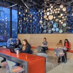 MassArt wanted the building to stand out in the Boston skyline and meaningfully identify them as an art college. It was the students’ idea that the building look like a painting and that it be just as colorful and vibrant as they are. ADD Inc suggested Gustav Klimt’s “Tree of Life” which helps convey the school’s rebirth and continuation.” In September, the incoming student residents voted to nickname the building, “The Tree House”.