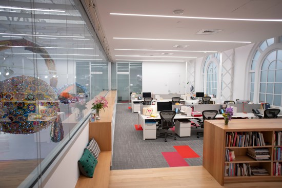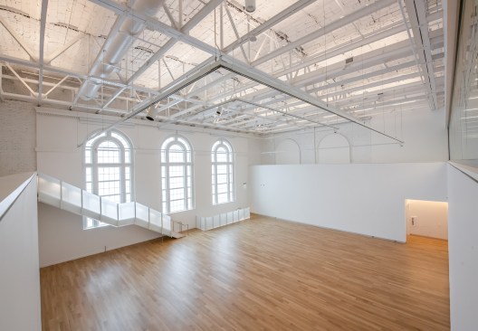 The history of the building is embedded into the details of this project; ceilings were torn down in the upstairs gallery to reveal the historic building’s original terracotta vaulting and steel trusses. At 36 feet high, the trusses can act as an armature for art, creating unlimited possibilities for display. A staircase leads to a second-level viewing platform, offering a unique perspective on a diverse range of experimental art. Throughout, crisp white textures were used to create a blank canvas for the museum’s rotating exhibits.