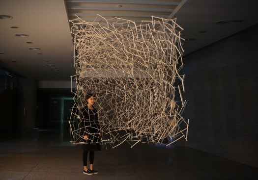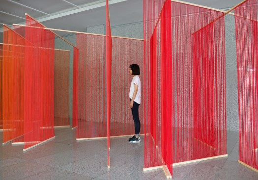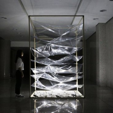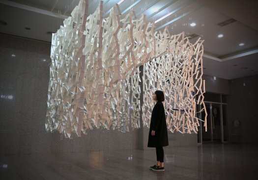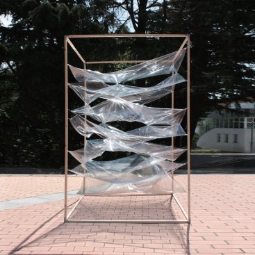 In this series of projects, the project team examined three materials (Paper, Wool, and Plastic), exploring ways to rethink and redefine the use of selected materials for the application. Focusing on the architectural notions of layering, superimposition, flat vs. depth, space vs. object, and exteriority vs. interiority, the architect engaged in a series of experiments. The resulting work yielded three temporary installations using laminated paper sheets, wool, and a synthetic plastic polymer.