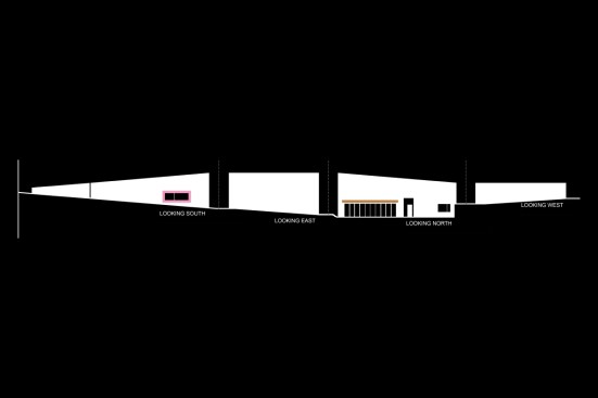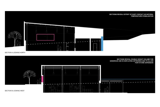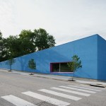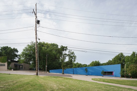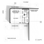 Due to demographic changes and gentrification, most of the client’s service facilities have moved to Kansas City’s Northeast neighborhood. However, it was crucial for them to maintain a presence in the Westside and make a strong visual statement of commitment with this project. They acquired the last commercially zoned property in the neighborhood, only to find it severely contaminated. The site design, as illustrated in the presentation diagrams, responds to the need for specific ground excavation for environmental abatement. The architectural form and color are simple yet significant gestures to establish presence. The building’s volume allows for generous artwork displays and potential future expansion with the addition of a second floor. Windows are limited and strategically placed. A custom-designed trellis of steel and wood, created by the architects, extends the program space outdoors and shields the large gallery window from direct sunlight.